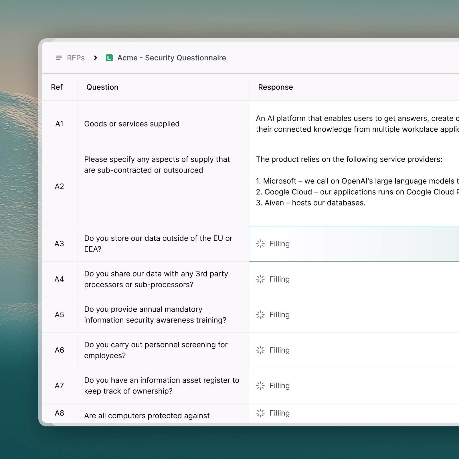 Accelerate your response process and bid capacity by 5x with automatic AI-generated responses sourced from your knowledge base.