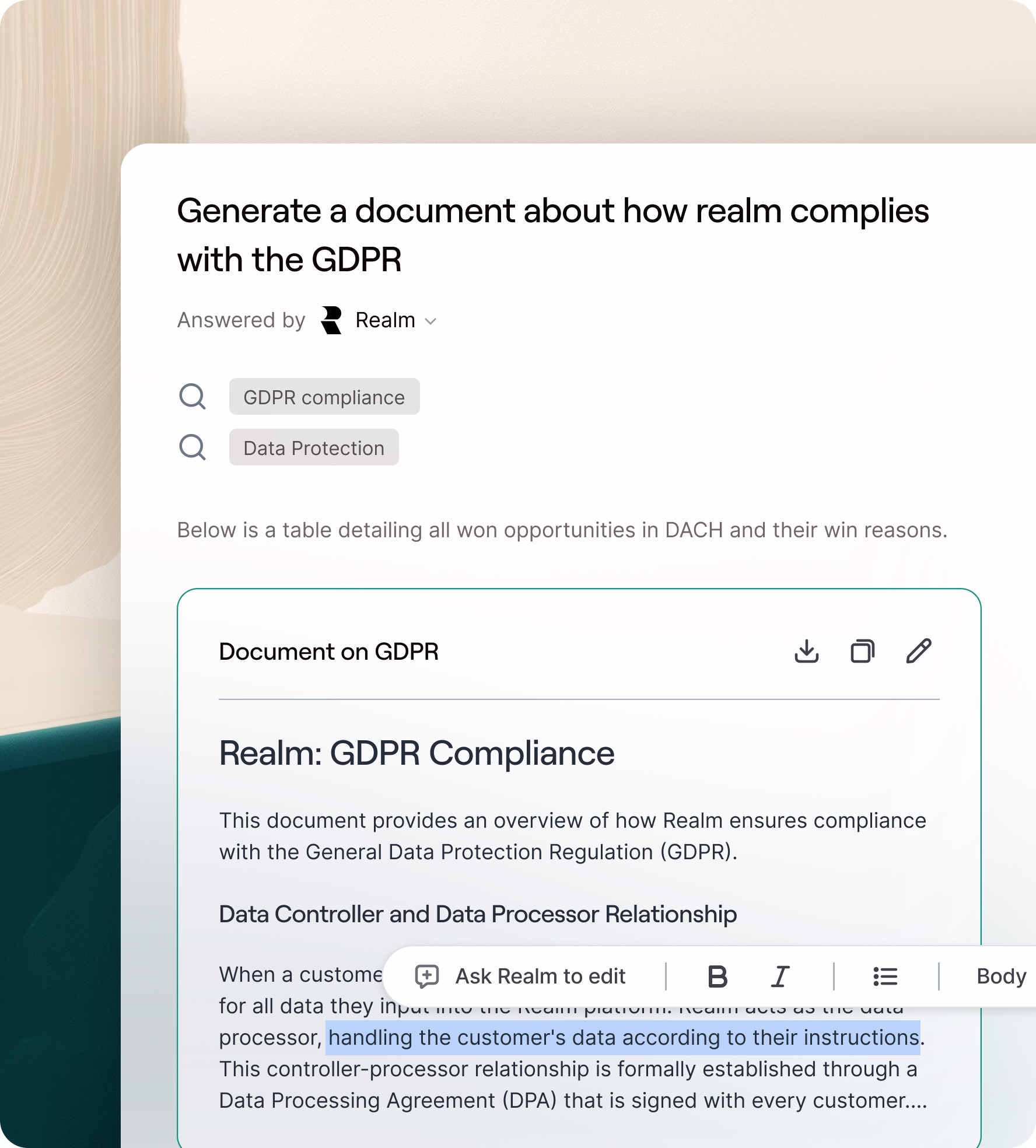 Get instant answers and create tailored collateral with Realm