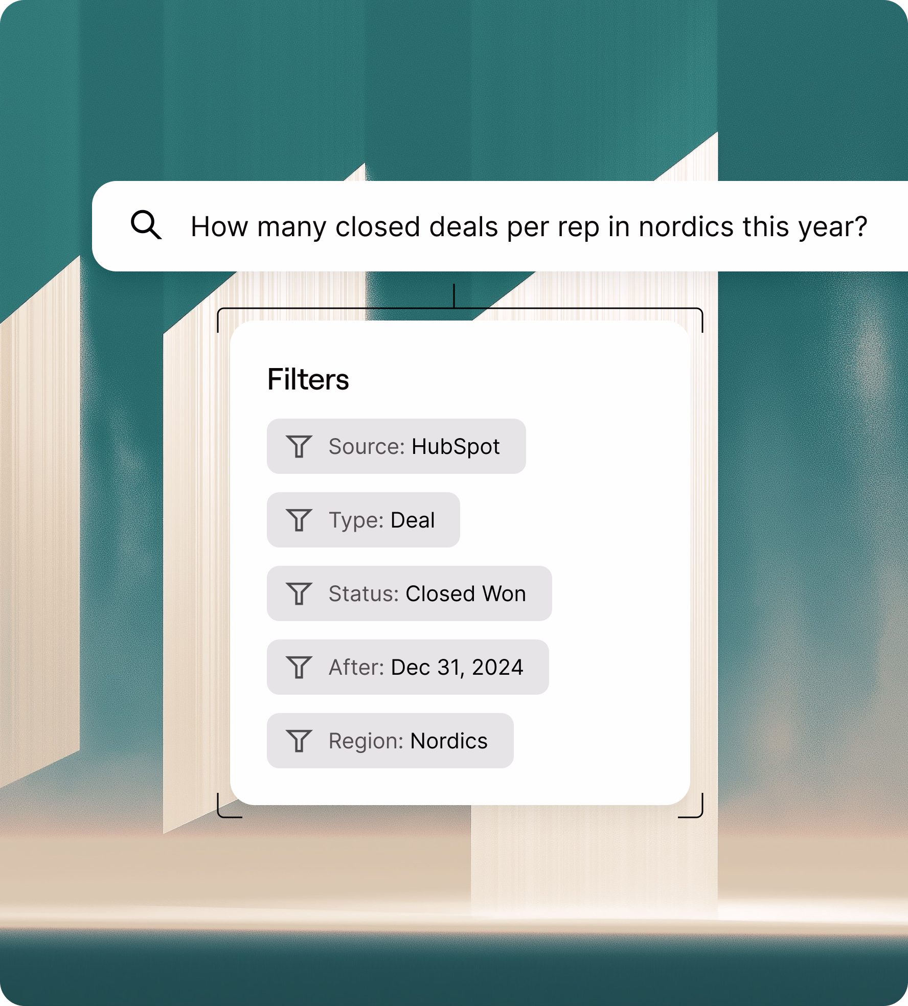 Simply describe what you're looking for. Realm interprets your intent and intelligently applies the right filters across your deals, tickets, and docs.