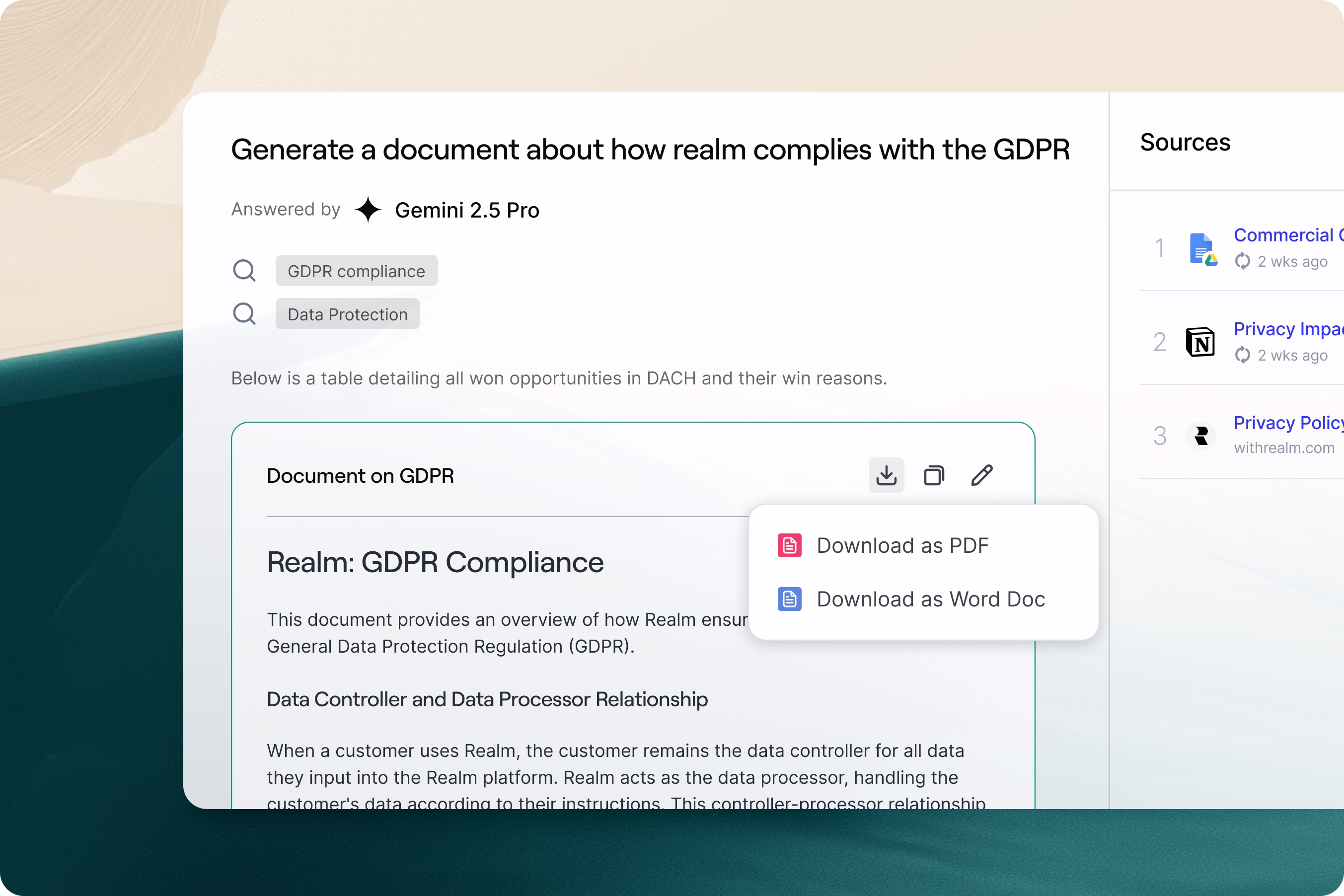 Instead of paying for multiple AI tools, you can use one subscription to let your users switch between the best models from leading providers. You can also build agents in Realm using these models, applying them to your company's knowledge and various other capabilities.